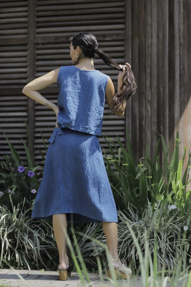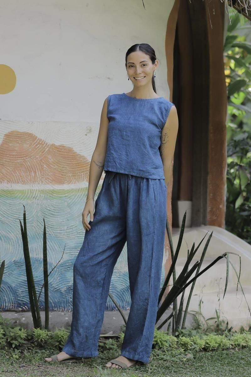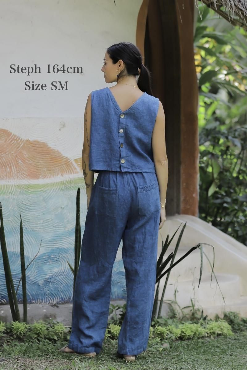 リネン シンシアガウチョ インディゴ/テラコッタ