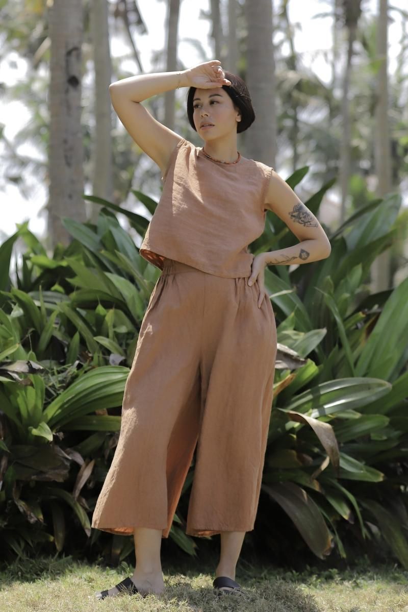 リネン100%素材と草木染めの、着込めば着込むほど愛着のわくコンビネーション。