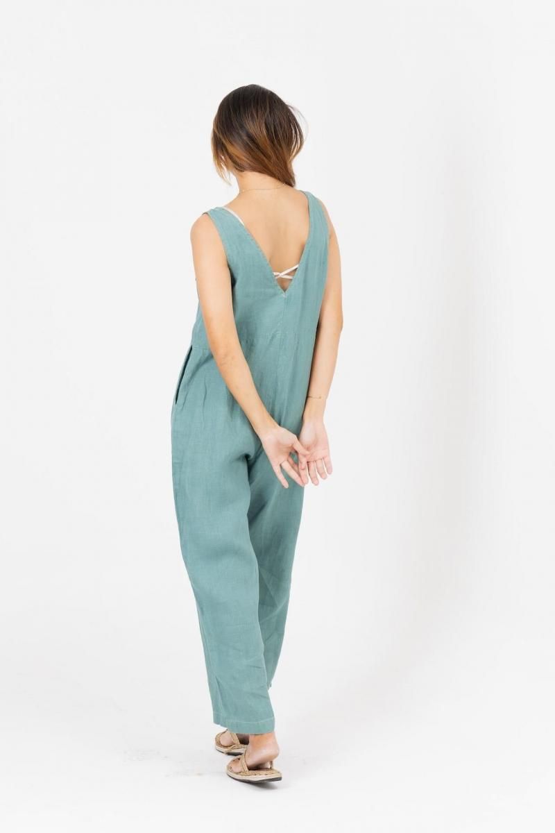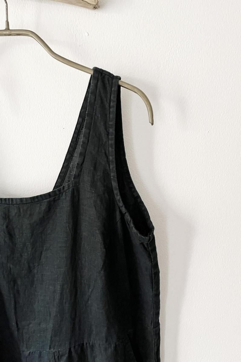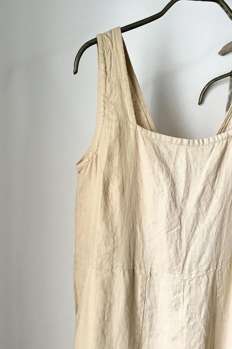 軽やかで通気性に優れたリネン素材と、大胆に開いたバックのVデザインで、暑い日でも涼しく過ごせます。