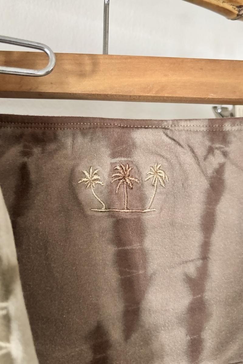 Indigo Seaでは染めから色止めまですべてナチュラル素材を使用していますので、一般的な化学染料で染められた製品に比べて洗濯や日光に弱く、使用を重ねるとともに、色が変化します。自然な色落ちは草木染めならではの風合いとご理解いただき、その変化もまるごとおたのしみください。
