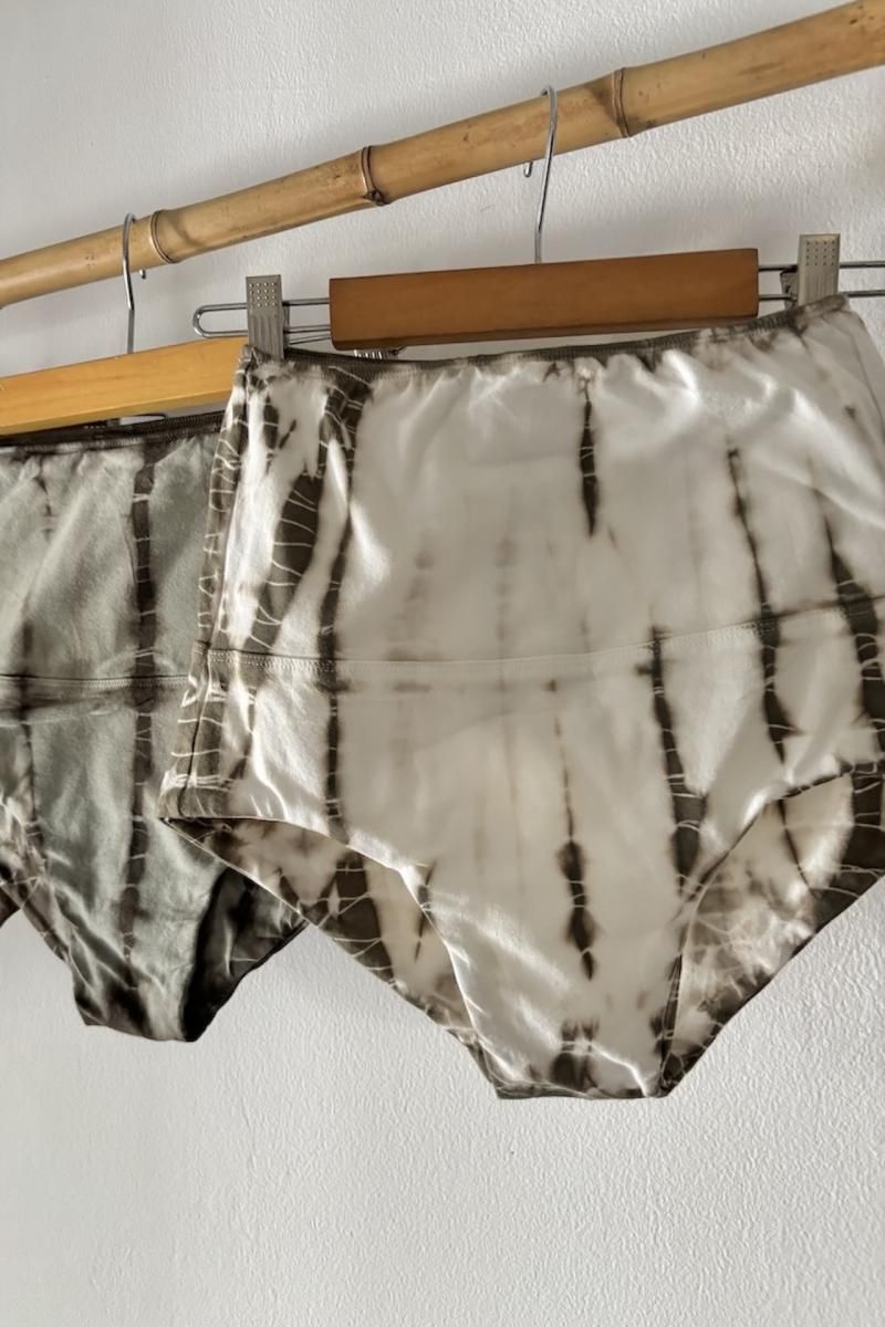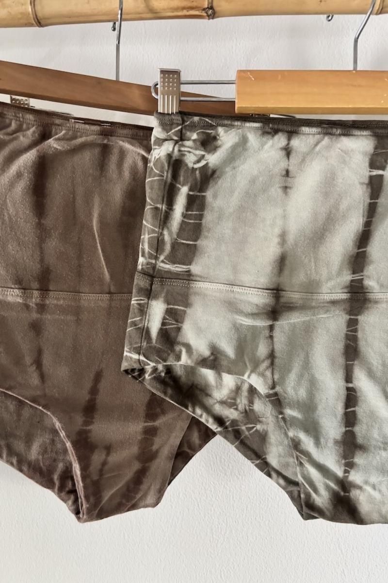 ウエストと脚付け根の内部にゴム使用。ウエストのデザインとして縫い合わせの切り返しがありますが、裏にはウエストの縫い目はありません。